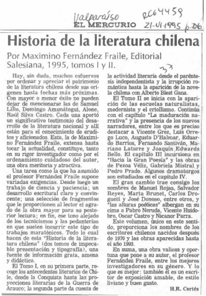 Historia de la literatura chilena [artículo] H. R. Cortés.