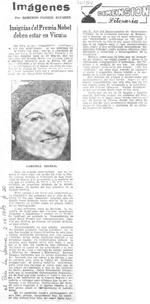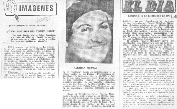 Insignias del Premio Nobel deben estar en Vicuña [artículo] Roberto Flores Alvarez.