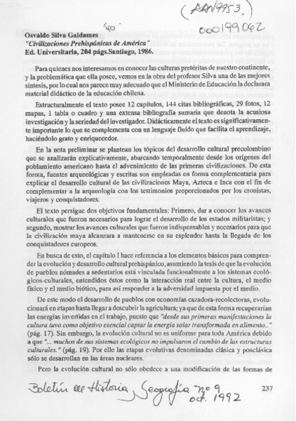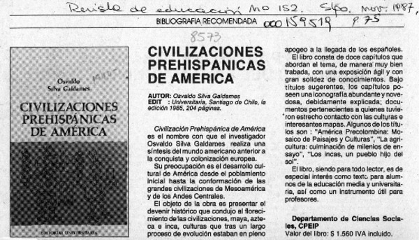 SILVA GALDAMES, OSVALDO - CIVILIZACIONES PREHISPANICAS DE AMERICA