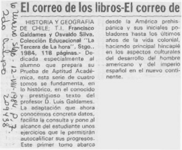 GALDAMES RAMIREZ, FRANCISCO - HISTORIA Y GEOGRAFIA DE CHILE - SILVA GALDAMES, OSVALDO