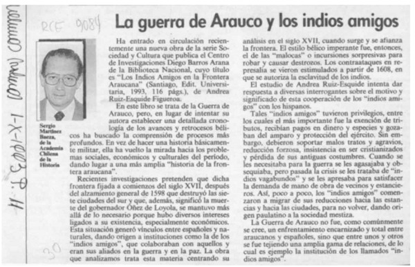 La guerra de Arauco y los indios amigos [artículo] Sergio Martínez Baeza.