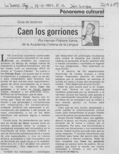"Caen los gorriones" [artículo] Hernán Poblete Varas.