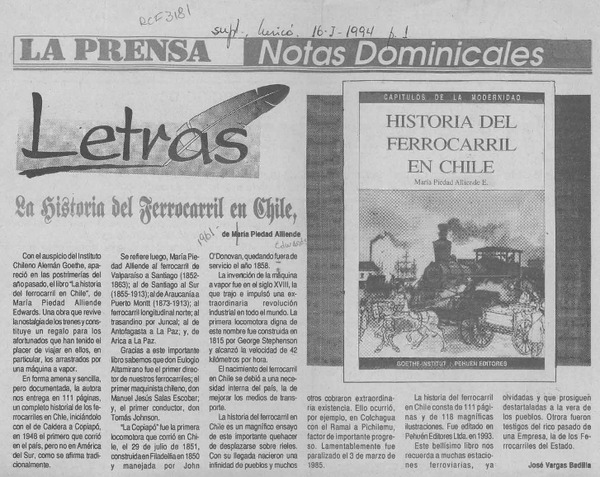 La historia del ferrocarril en Chile [artículo] José Vargas Badilla.