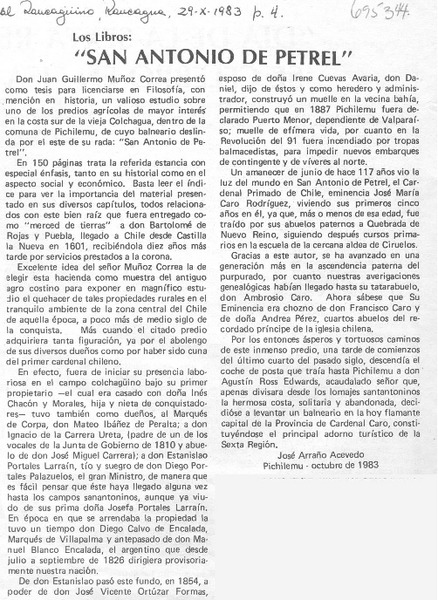 Autores chilenos - Muñoz Correa, Juan Guillermo - San Antonio de Petrel