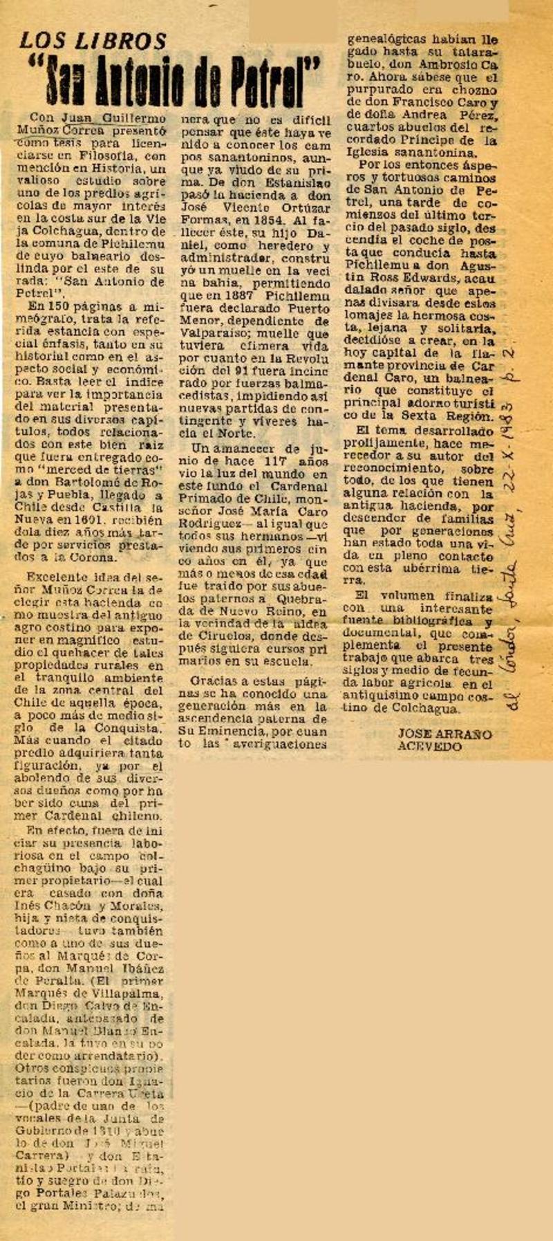San Antonio de Petrel" [artículo] José Arraño Acevedo.
