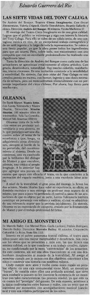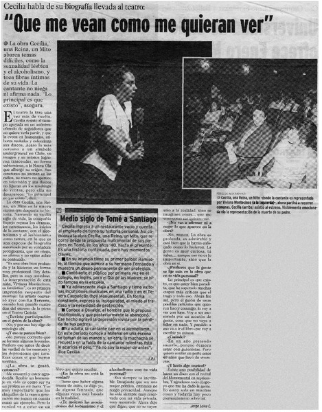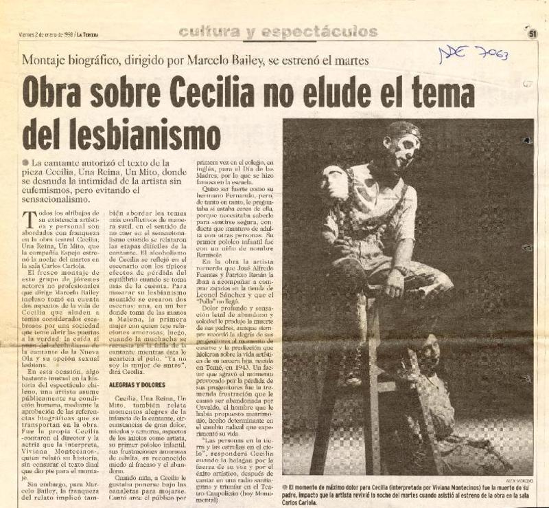 Obra sobre Cecilia no elude el tema del lesbianismo [artículo] Leopoldo Pulgar I.