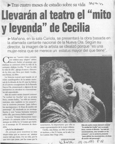 Llevarán al teatro el "mito y leyenda" de Cecilia [artículo]