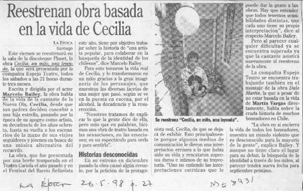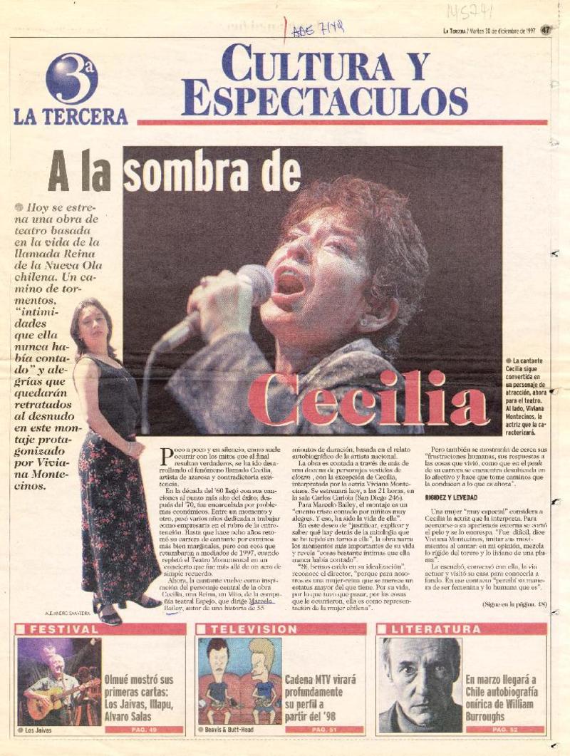 Reestrenan obra basada en la vida de Cecilia [artículo]