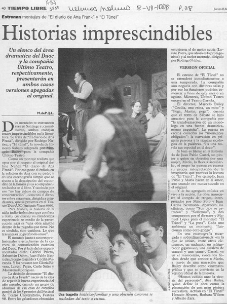 Historias imprescindibles [artículo] M. de P. [y] J. L.