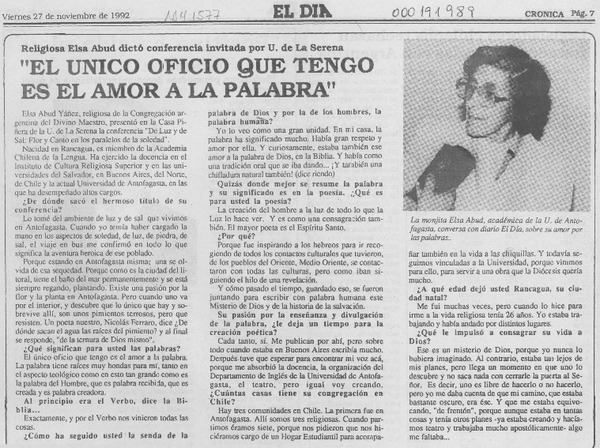 Hermana Elsa, amor por la palabra [artículo] Carmen Galleguillos Orchard.