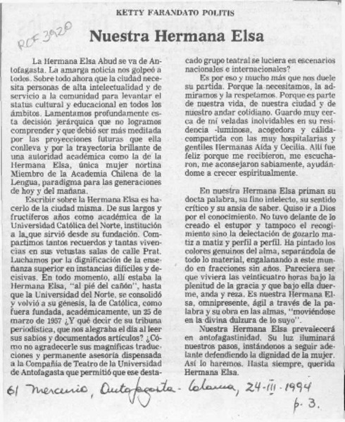 Nuestra Hermana Elsa [artículo] Ketty Farandato Politis.