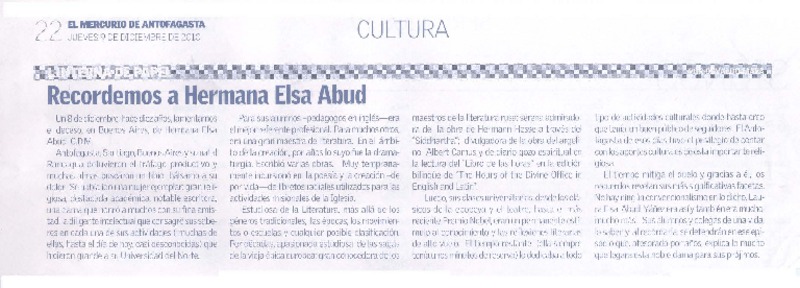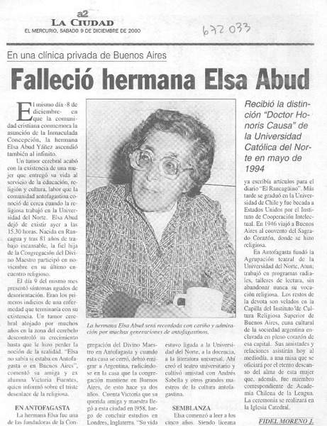 Falleció hermana Elsa Abud [artículo] Fidel Moreno J.