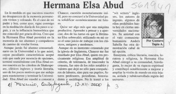 Hermana Elsa Abud [artículo] Gustavo Tapia A.