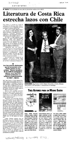 Literatura de Costa Rica estrecha lazos con Chile [artículo].