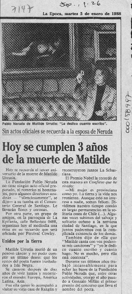 Hoy se cumplen 3 años de la muerte de Matilde [artículo].