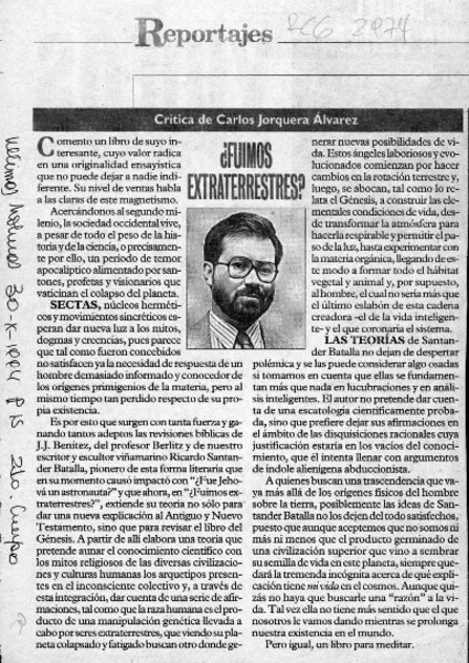 Fuimos extraterrestres? [artículo] Carlos Jorquera Alvarez.