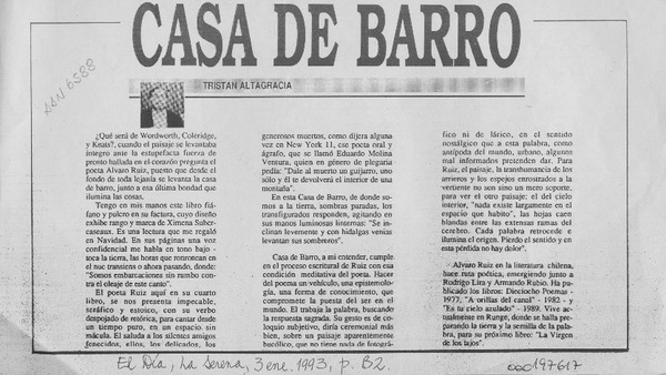 Casa de barro [artículo] Tristán Altagracia.