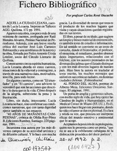 Fichero bibliográfico [artículo] Carlos René Ibacache.