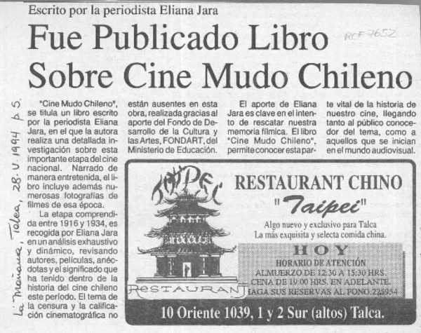 Fue publicado libro sobre cine mudo chileno [artículo].