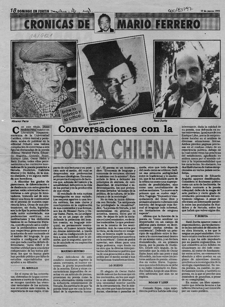 Conversaciones con la poesía chilena [artículo] Mario Ferrero.