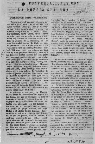 Conversaciones con la poesía chilena [artículo] Wellington Rojas Valdebenito.