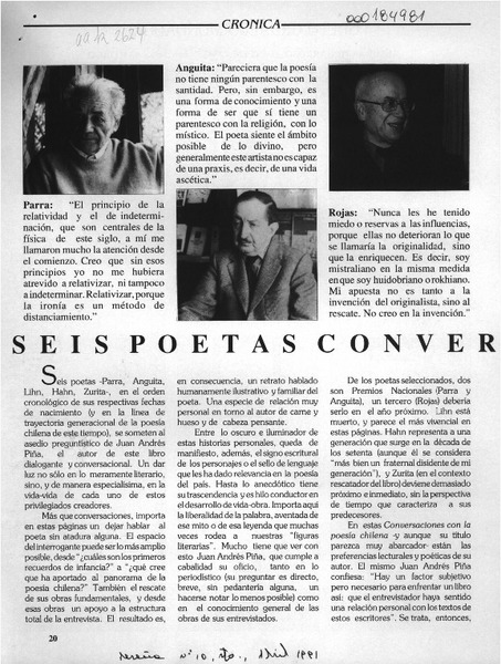 A lo menos seis poetas [artículo] Carlos Iturra.