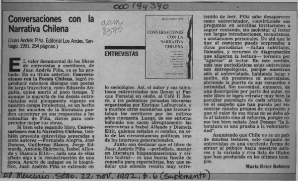 Conversaciones con la narrativa chilena [artículo] María Ester Roblero.