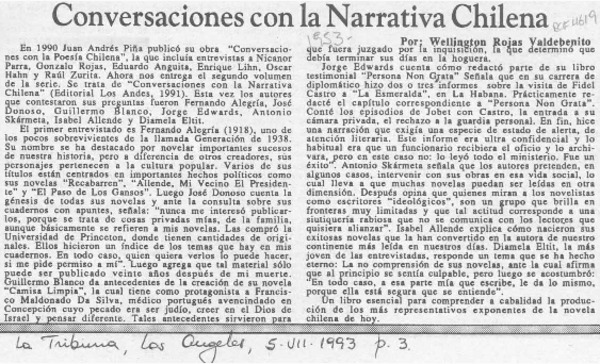 Conversaciones con la narrativa chilena [artículo] Wellington Rojas Valdebenito.