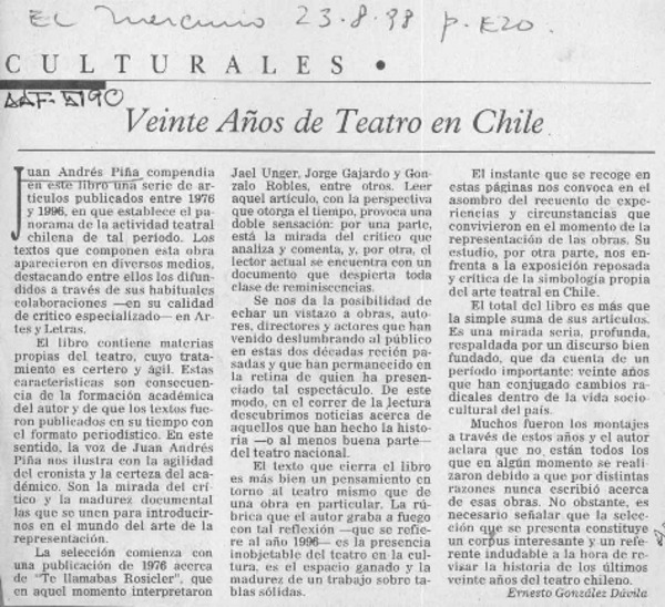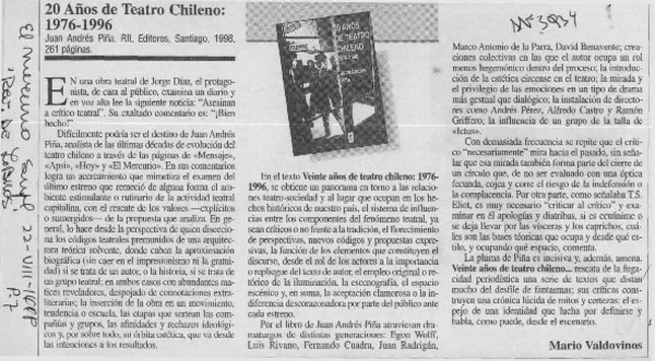 20 años de teatro chileno [artículo].
