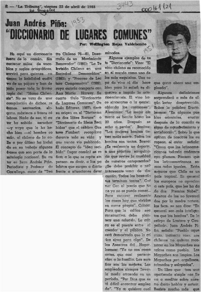 "Diccionario de lugares comunes" [artículo] Wellington Rojas Valdebenito.