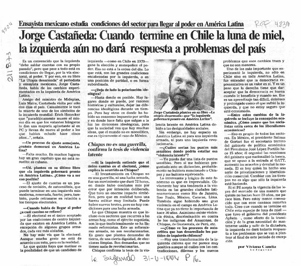 Jorge Castañeda, cuando termine en Chile la luna de miel, la izquierda aún no dará respuesta a problemas del país [artículo] Viviana Candia.