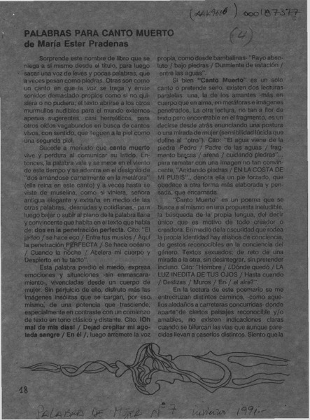 Palabras para canto muerto [artículo] Heddy Navarro Harry.