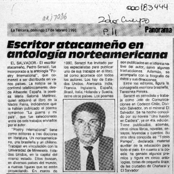 Periodista, escritor y poeta Serazzi en "Poesía mundial" [artículo].