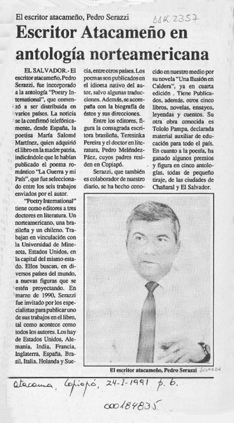 Escritor atacameño en antología norteamericana [artículo].