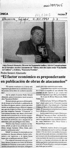 "El factor económico es preponderante en publicación de obras de atacameños" [artículo].