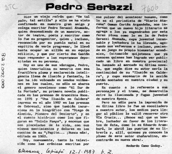 Autores chilenos - Serazzi Ahumada, Pedro - Ilusión en Caldera