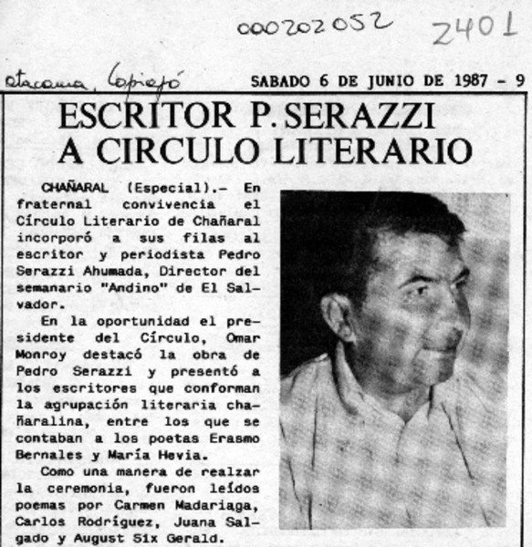 Escritor P. Serazzi a círculo literario [artículo].