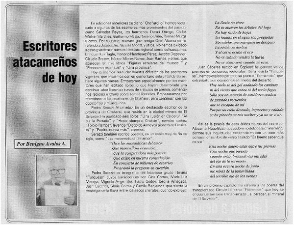 Escritores atacameños de hoy [artículo] Benigno Avalos A.