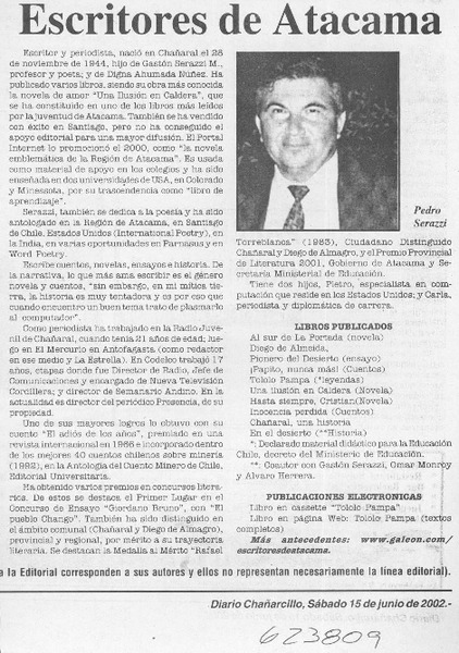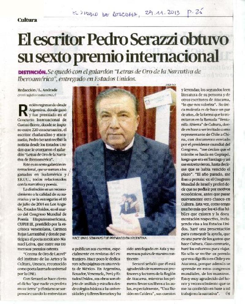 El escritor Pedro Serazzi obtuvo su sexto premio internacional [artículo] L. Andrade1066649