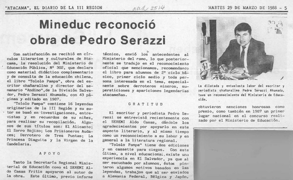 Mineduc reconoció obra de Pedro Serazzi [artículo].