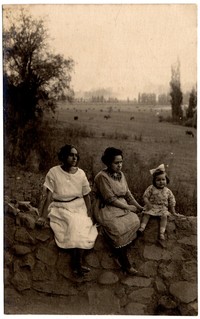 [Mujeres y niña sentadas en muro de piedra] [fotografía]. [Chile] : [entre 1920 y 1930]. 1 fotografía : monocromo, gelatina sobre papel fibra ; 14 x 9 cm. .