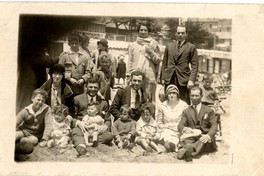 Grupo familiar compuesto por adultos y niños, aparecen retratados en balneario no identificado.