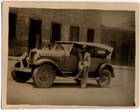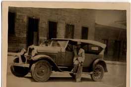 [Hombre apoyado en automóvil Ford] [fotografía]. [Chile] : [entre 1920 y 1930]. 1 fotografía : monocromo, gelatina sobre papel fibra ; 7 x 9 cm. .