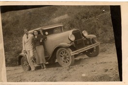 [Mujer y hombre fuera de un automóvil] [fotografía]. [Chile] : [entre 1920 y 1930]. 1 fotografía : monocromo, gelatina sobre papel fibra ; 9 x 14. .