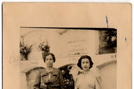 [Mujeres delante de nichos en un cementerio] [fotografía].