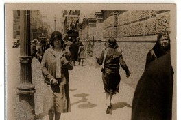 [Mujer caminando por el centro de la capital] [fotografía]. [Santiago?] : [entre 1920 y 1930]. 1 fotografía : monocromo, gelatina sobre papel fibra ; 14 x 9 cm. .