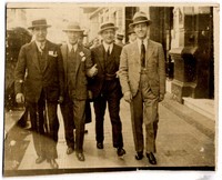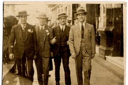 [Hombres caminando por calle céntrica] [fotografía]. [Santiago?] : 1931. 1 fotografía : monocromo, gelatina sobre papel fibra ; 7 x 9 cm. .