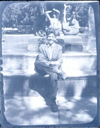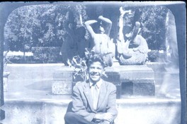 [Hombre sentando al borde de fuente de agua] [fotografía]. [Santiago?] : [entre 1930 y 1950]. 1 fotografía : negativo sobre papel ; 9 x 7 cm. .