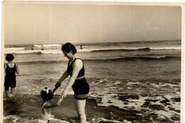[Madre e hija en playa chica de Cartagena] [fotografía]. [Chile] : [entre 1920 y 1930]. 1 fotografía : monocromo, gelatina sobre papel fibra ; 9 x 12 cm. .