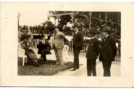 [Personas en hipódromo] [fotografía]. [Chile] : [entre 1920 y 1930]. 1 fotografía : monocromo, gelatina sobre papel fibra ; 9 x 14 cm. .
